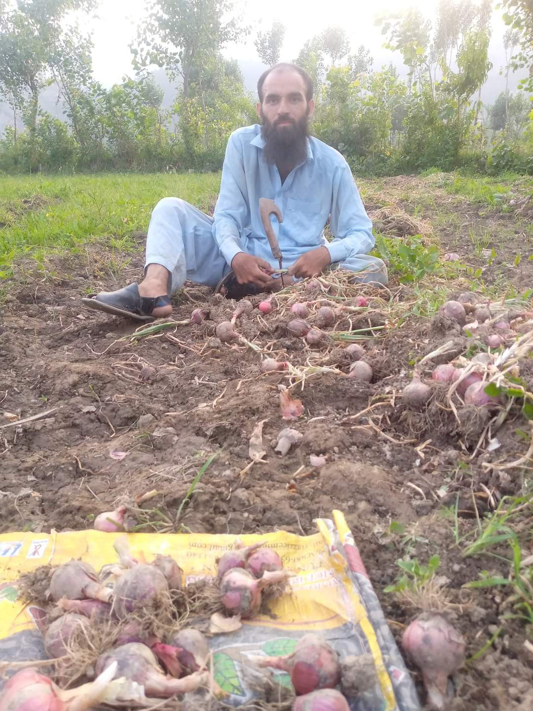 An intriguing photograph captures the essence of our society's culture and traditions. It features Niaz ul Mulk Niaz engrossed in his work within an onion field. This evocative image serves as a poignant representation of our society's agricultural practices and way of life.